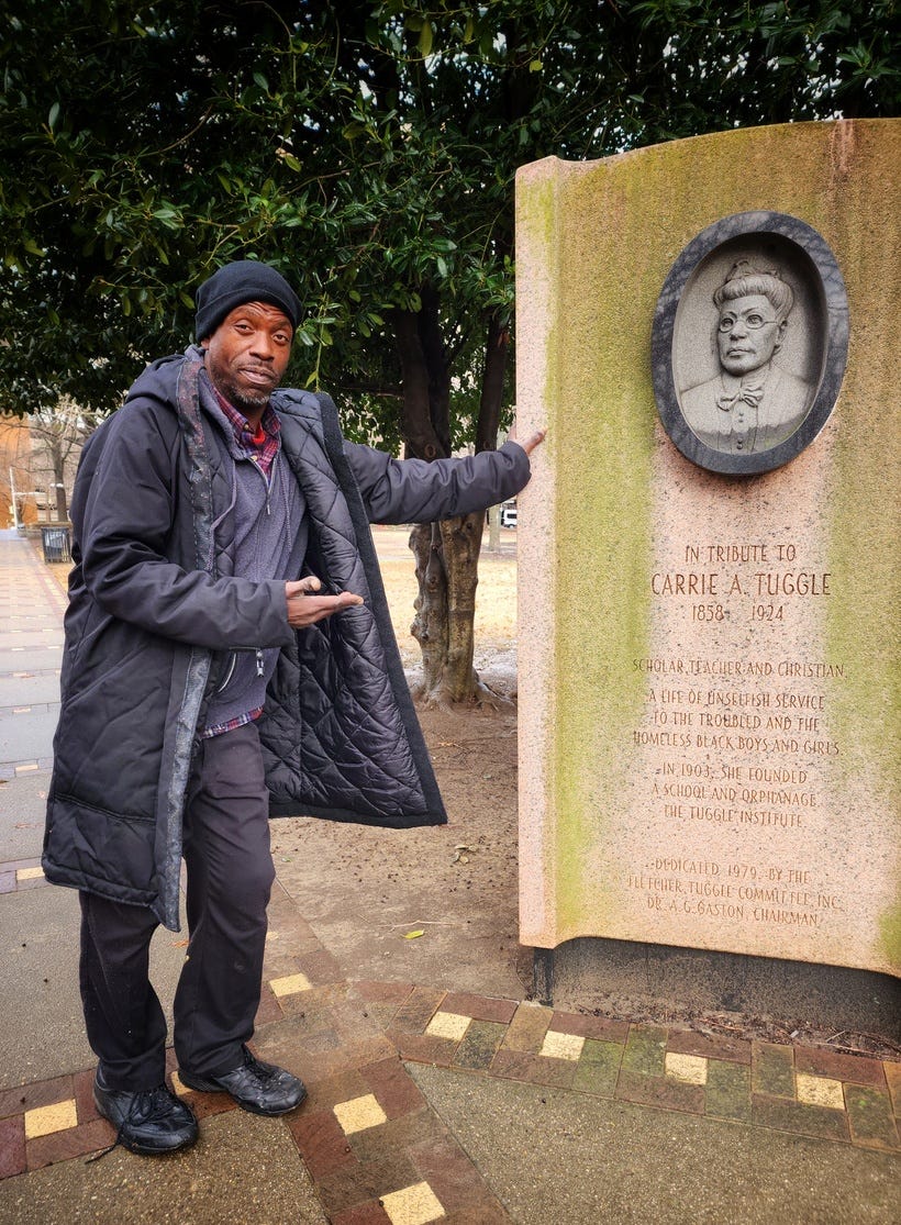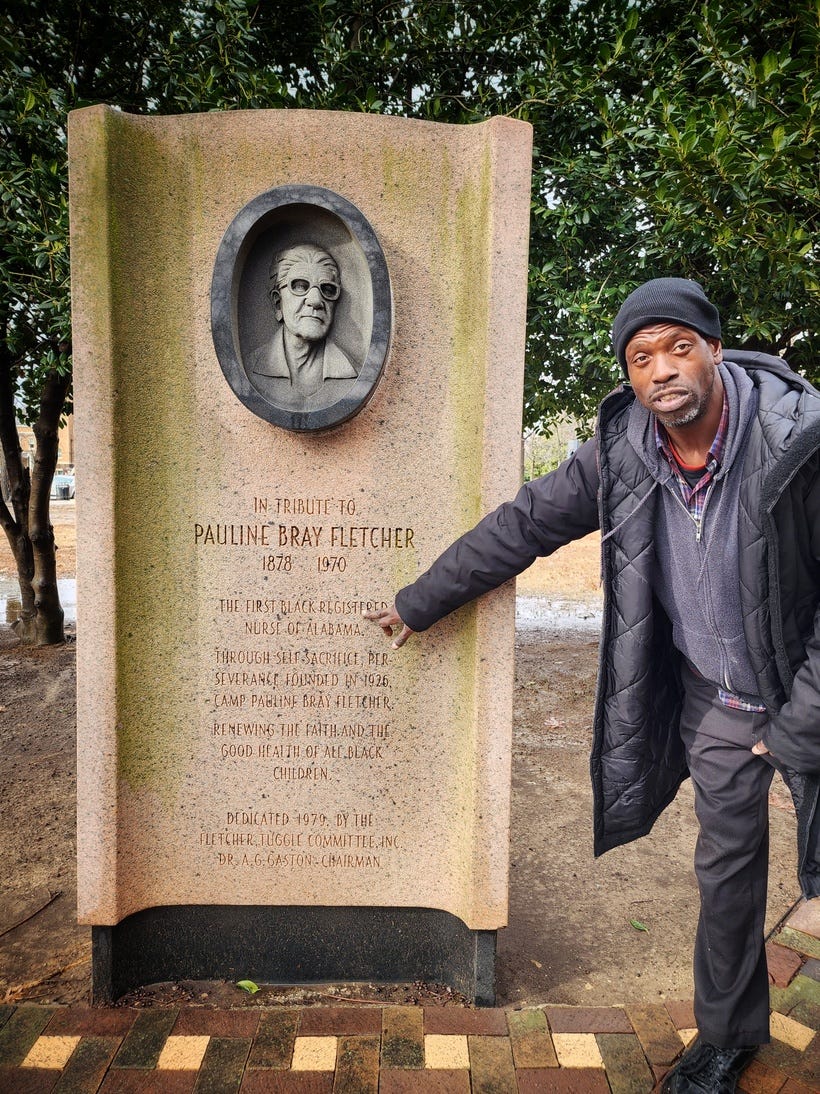 He showed me the monument to Pauline Bray Fletcher, the first Black registered nurse in Alabama. He told me his sister's a nurse and she looked up to Fletcher.