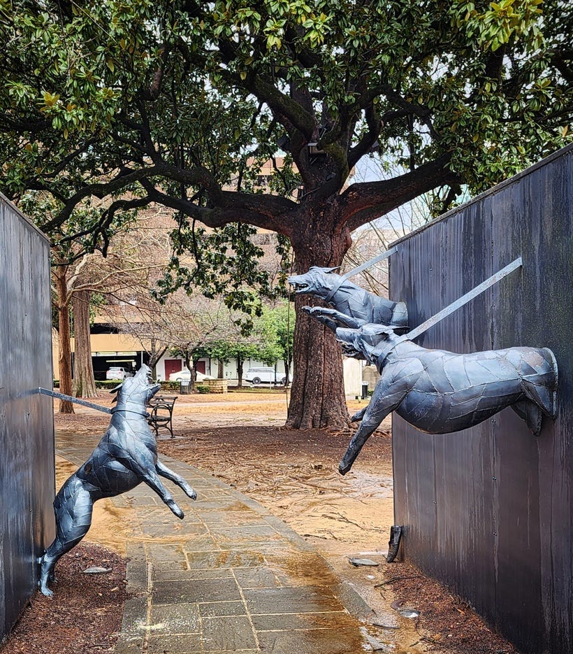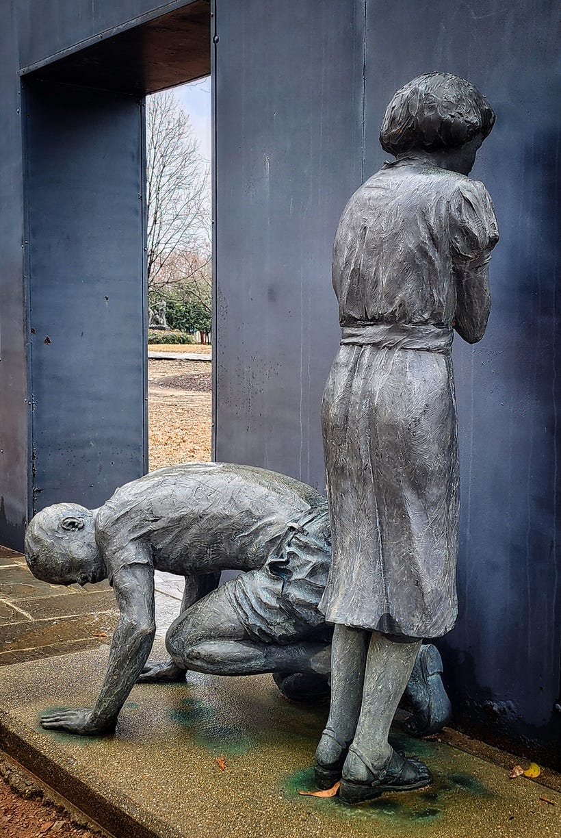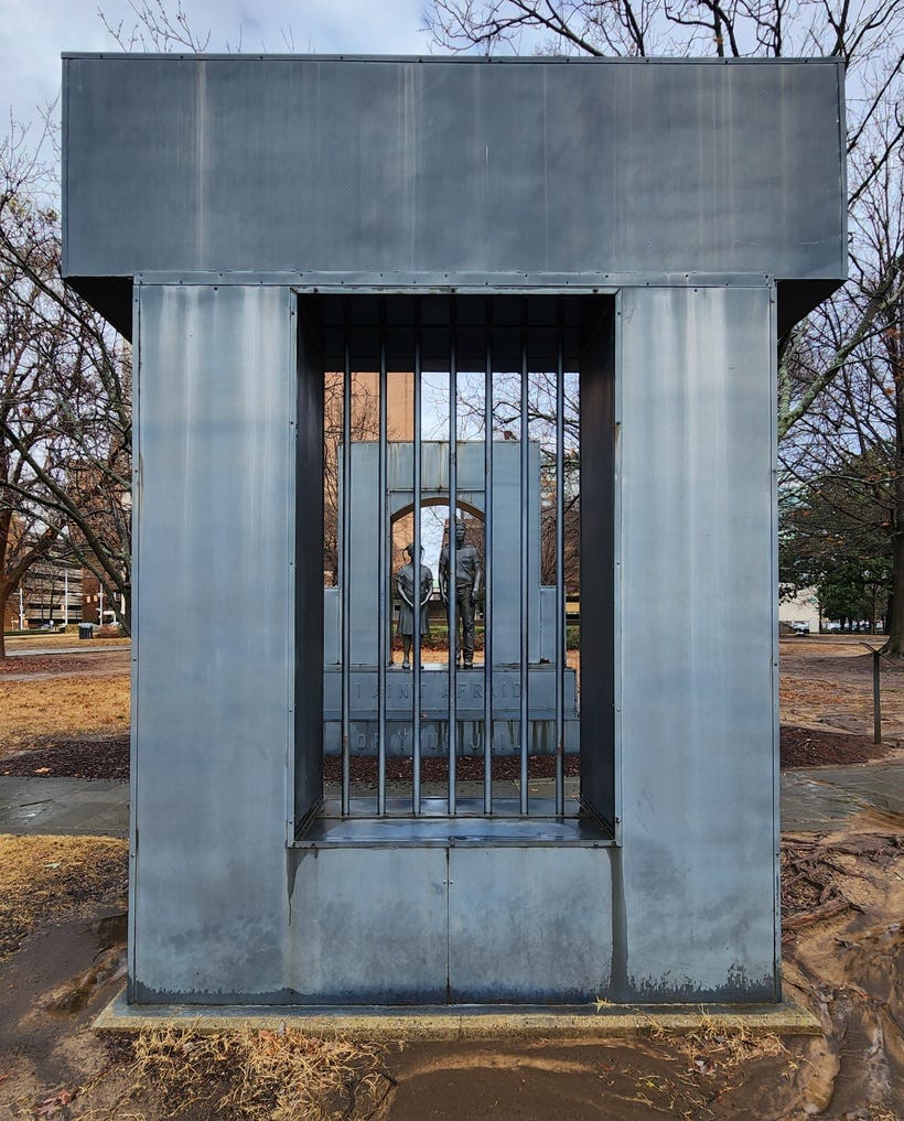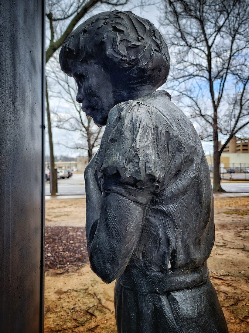 I was immediately taken with the intensity of these displays, nearly all of them detailing the horrors that Black Americans faced in a still VERY segregated Alabama and beyond. The audio tour that you could dial into wasn't operating correctly (or it was operator error, I always allow for that), so I just took my time at each spot taking in the imagery, sculptures crafted by artists hoping to make sure that this time is not forgotten.