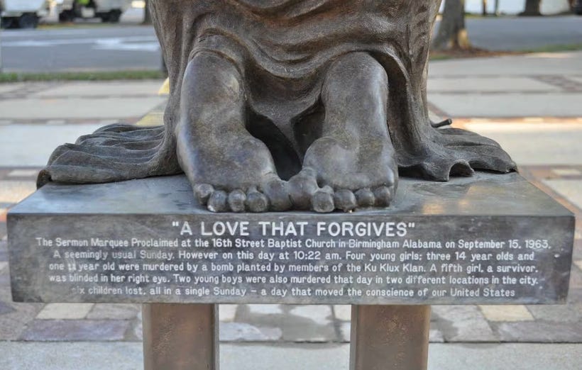 We made our way back to where I first saw Marcus, the Four Spirits monument, a tribute to the little girls - Addie Mae Collins, Denise McNair, Carolyn Robertson and Cynthia Wesley - who were murdered by the cowards in white hoods back in 1963.